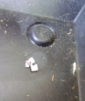Hier sieht man die Überreste des alten Steuerpimpels. Im Bild darunter der neue Pimpel. Als Pimpelersatz verwendete ich ein Stück Lautsprecherkabelisolierung.